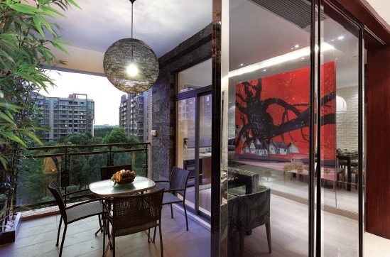 客廳大面積白色,取自傳統(tǒng)窗花符號的主墻成為空間的焦點,客廳與書房之間通過一個圓形窗洞串聯(lián)起來,營造出別有洞天的情趣。餐廳的無框畫為整個空間注入活力,同一空間里,傳統(tǒng)與現(xiàn)代,絢麗與樸素,可以鮮明地并存。