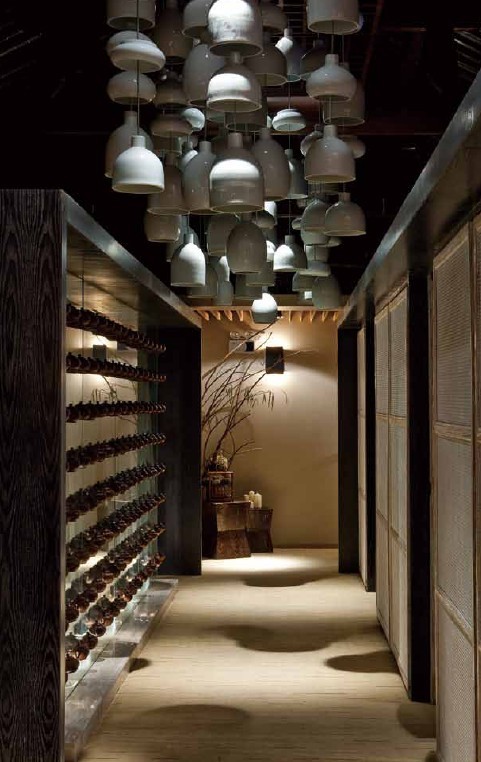 我們還選擇茶具器皿作為基本元素在空間中大量運用,并衍生出一系列的裝飾藝術品,這既與茶文化的主題相契合,又使空間在古樸背景下蕩漾著些許現(xiàn)代藝術氣息。