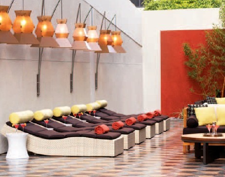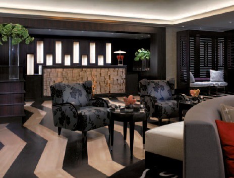 客人們一旦踏上黑鐵木和白橡木雕飾的鋸齒形木地板以及特別定制的嵌有奶白色熱帶樹葉的巧克力色地毯時(shí),就不禁為之驚呼。背光式玻璃板引領(lǐng)客人們徑直走向由檀木為裝飾材料的前臺(tái)接待處。