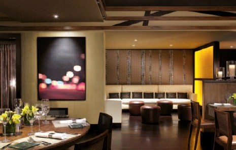 在大廳里面,整個(gè)空間都由溫暖的白金墻環(huán)繞而成,并巧妙使用了大量的黑檀木和黑鐵木制品。室內(nèi)色調(diào)融合了灰褐色、巧克力色和法國(guó)灰的背景色,并配以深紅色、紫紅色,以及些許銀色的點(diǎn)綴。室內(nèi)富有特色的裝飾家具上,搭配了奢華的紡織品,顯得優(yōu)雅別致。