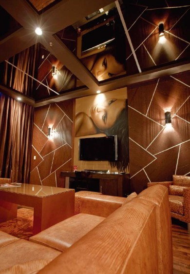 套房?jī)?nèi)的一大亮點(diǎn)是一張巨大的C形睡床,睡床四周貼有藍(lán)色意大利進(jìn)口瓷磚。LED燈與床底燈燈光的烘托下,令人產(chǎn)生出一種床體懸浮于地面之上的奇妙幻覺(jué)。