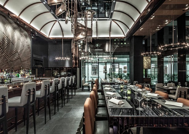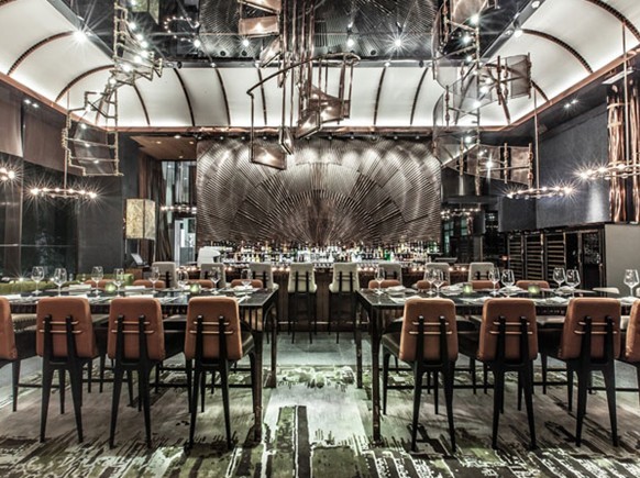 整個(gè)餐飲會(huì)所設(shè)計(jì)以工業(yè)及機(jī)械領(lǐng)域中常見的鋼鐵色為主調(diào),在時(shí)尚簡約的室內(nèi)氛圍與室外大自然環(huán)境相互輝映下,結(jié)合了未來感與復(fù)古風(fēng)、豪華氣派與冷峻氣息,超現(xiàn)實(shí)感覺與五官體驗(yàn)等元素交織環(huán)扣,讓客人一邊品嘗美食,一邊沉醉于當(dāng)中錯(cuò)綜交纏的視覺享受。