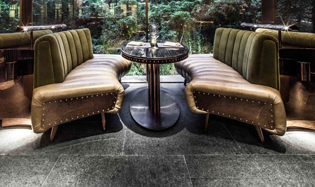 AMMO餐廳內(nèi)的家具特意以皮革、絨毛及絲絹等高貴典雅的柔和物料制成,緩和了裝置設(shè)計(jì)所流露的冰冷銳利感覺。由墻壁以至餐桌等每項(xiàng)細(xì)節(jié)皆由Joyce度身設(shè)計(jì),務(wù)求充分演繹出心中的理想構(gòu)思。