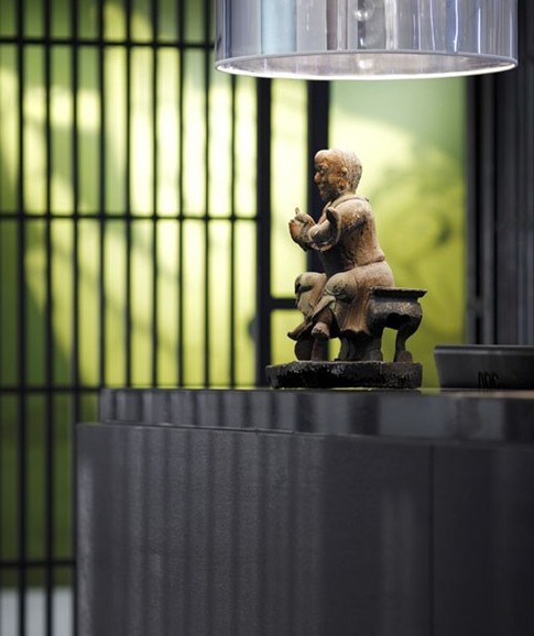 他們是造物的高手,能與神對(duì)話的使者。開(kāi)闊的大廳劃分為三種區(qū)域,兩組圍合沙發(fā)區(qū)域和洽談區(qū)。色彩上則是經(jīng)過(guò)計(jì)算的。背景的米黃色護(hù)墻,藍(lán)色的沙發(fā),酒紅色的座椅,不同比例的擺放著。體現(xiàn)了所有的原色構(gòu)成,視覺(jué)上飽滿豐富。同時(shí),象征著法國(guó)式的古典時(shí)尚,酒紅的波爾多,米黃的阿維尼翁城堡無(wú)不收斂其中。家具款式上采用了法國(guó)品牌RocheBobois,優(yōu)雅時(shí)尚,而空間用途更多體現(xiàn)了巴黎的某種沙龍文化?!?/font>