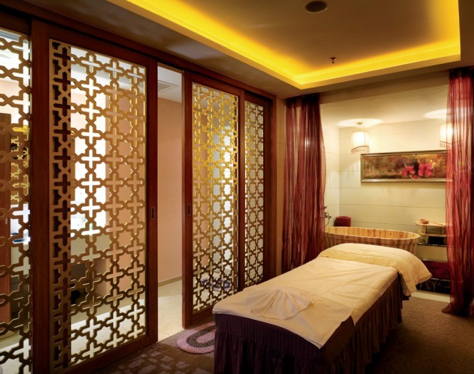 一組組線條簡單、重復(fù)規(guī)整的平面圖案使人一進spa空間就感受到一種寧靜、優(yōu)雅的氛圍。