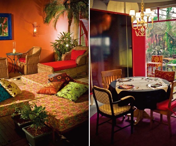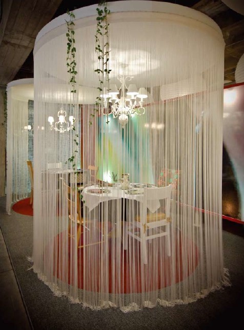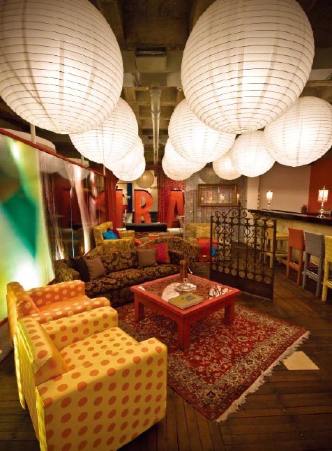 薄紗窗簾從頂棚垂落至地面,營(yíng)造出一個(gè)較為私密的空間。碩大的白色吊燈下方,圓形的餐桌在不同風(fēng)格的座椅和線(xiàn)簾的環(huán)繞下,為賓客帶去半開(kāi)放半私密的感覺(jué)。室內(nèi)花園內(nèi),長(zhǎng)椅及腳輪桌為情侶約會(huì)或多人聚餐提供了最佳場(chǎng)所。古樸、環(huán)保的家具為這里增添一絲個(gè)性化的同時(shí),也成為賓客用餐之余津津樂(lè)道的談資。休息室及茶室內(nèi),巨大的紙燈散發(fā)出柔和的燈光,與材質(zhì)、風(fēng)格各異的沙發(fā)、軟凳、躺椅完美搭配,營(yíng)造出無(wú)比舒適、愜意的氛圍。