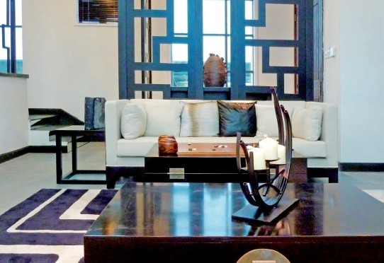 在配飾的選擇上,茶幾上具有中式文化味道的圍棋和功夫茶具,雅致而不奢華,穩(wěn)重而不沉悶。此外,傳統(tǒng)的花瓶造型用現(xiàn)代手法重新設(shè)計(jì),以現(xiàn)代私人會(huì)所設(shè)計(jì)手法表現(xiàn)水墨畫(huà)另一面的墻面裝飾畫(huà)等等,既新穎又獨(dú)特。挑高的客廳中,設(shè)計(jì)師運(yùn)用LED 節(jié)能燈取代了傳統(tǒng)別墅的吊燈,有利于減少高發(fā)熱的光源,從而減少碳的排放。