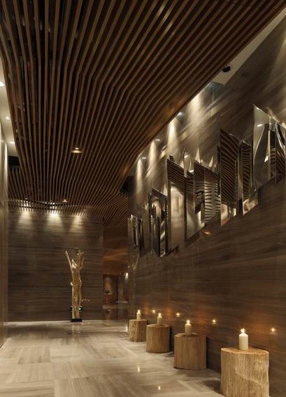 您現(xiàn)在所在的位置:首頁>會(huì)所設(shè)計(jì)>商務(wù)會(huì)所設(shè)計(jì)>正文 在本案設(shè)計(jì)中,室內(nèi)與建筑外觀一樣別具考究。商務(wù)會(huì)所大堂天花的造型,保持了建筑外立面形體的一致性,蜿蜒而折回,柔軟而硬朗,似無序而協(xié)調(diào)。而會(huì)所設(shè)計(jì)公司特意選用的鋁質(zhì)材料,剛好凸顯了整個(gè)空間的厚重感和莊重的效果,同時(shí)又不失舒適感。體現(xiàn)出了商務(wù)與度假的主題。