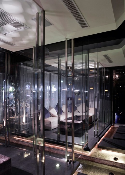 本會所設(shè)計定調(diào)為時尚,除了在外觀上利用都市設(shè)計的退縮手法,凸顯設(shè)計的與眾不同以外,內(nèi)部的格局也十分現(xiàn)代,最具特色的水上VIP玻璃包廂,為顧客帶來獨特的觀賞效果。此外,項目的材質(zhì)使用考究,色彩跳躍,相配合的燈光設(shè)計尤其出彩,突出了項目精致時尚的特點。