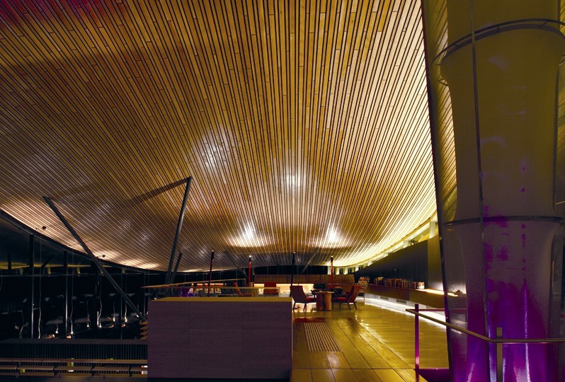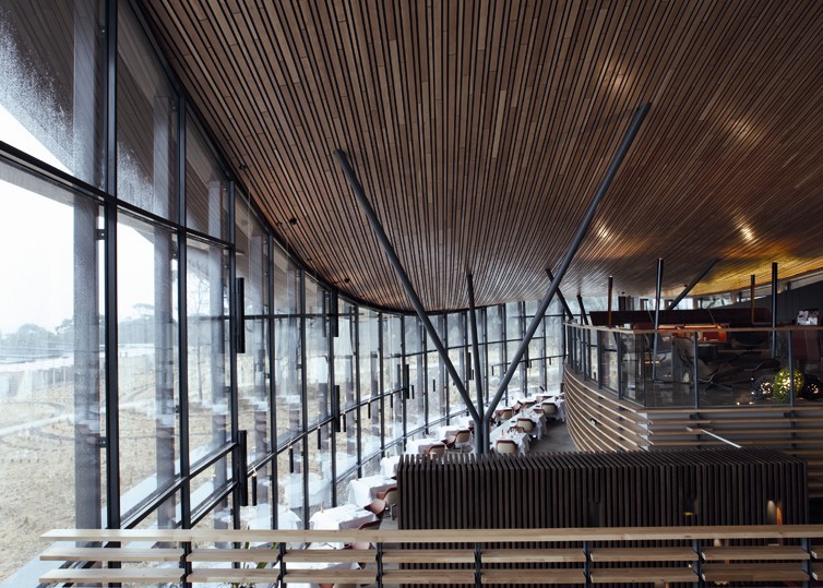 該餐飲會所項目大致由三個部分組成。首先,客人進入住接待建筑樓,然后沿著一條長長的像防波堤一樣的 人行道抵達觀光臺,登上觀光臺,海灣的景色一覽無余。走下接待處,映入眼簾的是位于底層的主餐廳和休息室樓層,置身該處可以盡覽周邊全景。從這里還可以去到包房。