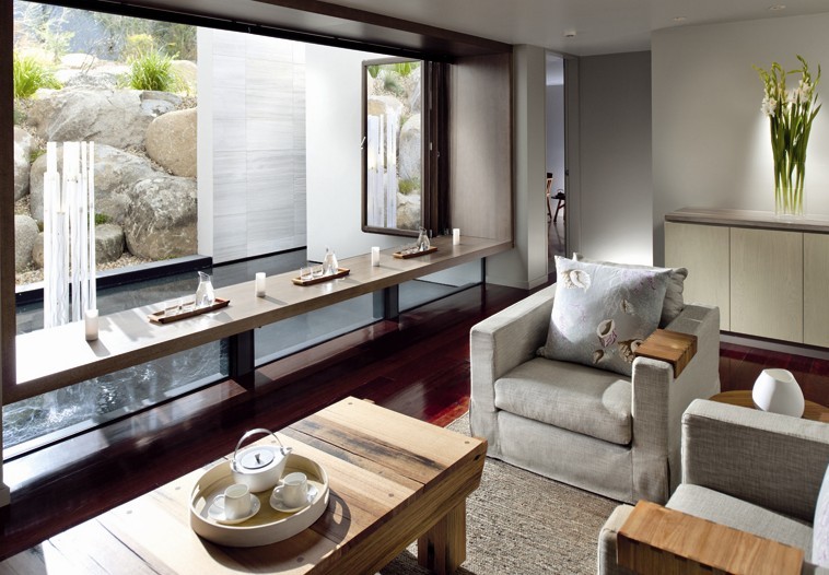 其次,餐飲會所的每間包房都沿著彎彎曲曲的人行道分散開來,每一間的位置都是精心計算過的,可以讓房內(nèi)的賓客欣賞到Hazards群山美景的同時又不被打擾。套房的類型可分為三種:豪華套房、高級套房和商務(wù)套房。每一間套房都帶有露天平臺,正對屋外的景觀。此處還有一個私人的庭院坐北朝南而立,與人行道連通 。