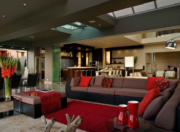 起居室窗戶的位置很高,位于陽臺的上方,私人會所設計一般都會采用這種方式,可以得到更多的陽光。室內(nèi)通風情況良好,降低了空氣調(diào)節(jié)系統(tǒng)使用的頻率。地下室中設有小型的家庭劇場和陳列室,陳列室中收藏著業(yè)主搜集來的各式各樣的吉他。