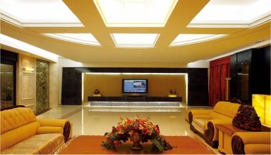 進(jìn)門玄關(guān)采用大型花梨木浮雕,木香悠悠,大氣中滲透著親和力。會(huì)所設(shè)計(jì)中空大堂大型金箔造型天花使得空間彌漫著富貴的氣息,更顯氣勢(shì)輝煌。拜祭廳設(shè)計(jì)采用了潮汕木雕及潮汕宮燈,突顯潮汕風(fēng)俗和特色。