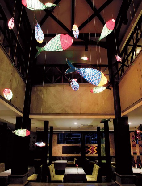 您現(xiàn)在所在的位置:首頁>會所設(shè)計>餐飲會所設(shè)計>正文該主題餐廳在內(nèi)部空間裝飾上運用船、魚、海洋等亞熱帶元素,營造出熱鬧的餐飲氛圍,又極具地域民俗特色??臻g講究虛實平衡,講究位置經(jīng)營。空間構(gòu)成在規(guī)則中體現(xiàn)不規(guī)則,不規(guī)則中又隱含邏輯條理,并通過一些紋飾及海洋動植物圖案來體現(xiàn)空間的節(jié)奏和韻律。餐飲會所設(shè)計公司通過一些弧形條線經(jīng)行空間造型,給人起伏波動的視覺感受,也柔化了方正空間帶來的強硬感覺。