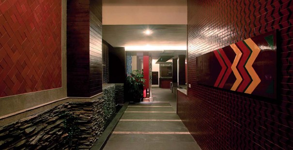 空間在某些局部采用了鏤空的裝飾,比如樓梯、樓道墻,凌亂的或規(guī)則的鏤空的形狀給人帶來視覺上的審美感受,同時也營造出一種活潑、無拘束、無壓抑的感受。