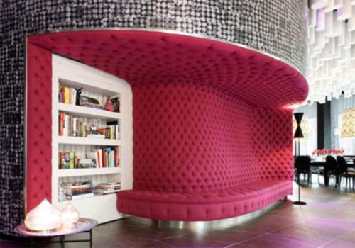 半環(huán)形邊緣和形式進(jìn)行的內(nèi)部結(jié)構(gòu),正如流通走廊的房間都有動(dòng)搖不要攪拌。這個(gè)酒店設(shè)計(jì)語(yǔ)言是整個(gè)內(nèi)飾的精致的圓筒形標(biāo)志和預(yù)測(cè)樓照明。其中一個(gè)最有活力的功能,在臥室橢圓形的外觀,描繪了一個(gè)裝飾元素的70年代。屋頂陽(yáng)臺(tái)是一個(gè)神奇的功能,并承諾放寬成嘆為觀止欣賞城市的全景。