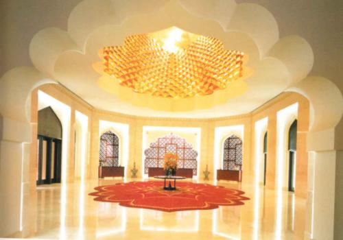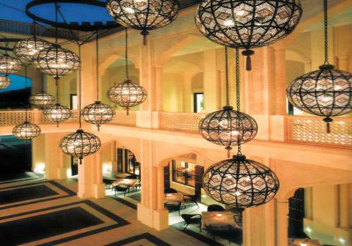 滲透了阿拉伯文化的建筑語匯,懸掛著水晶珠枝形裝飾燈,光纖安裝在每個(gè)水晶珠的端頭,創(chuàng)造變色和魔幻的閃爍效果。所有的這一切都為我們鄭州裝修公司做了度假酒店設(shè)計(jì)的榜樣。