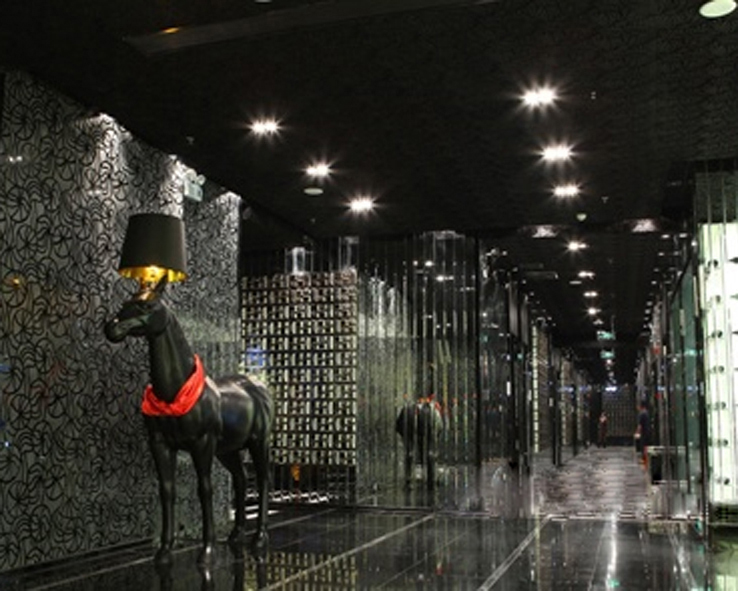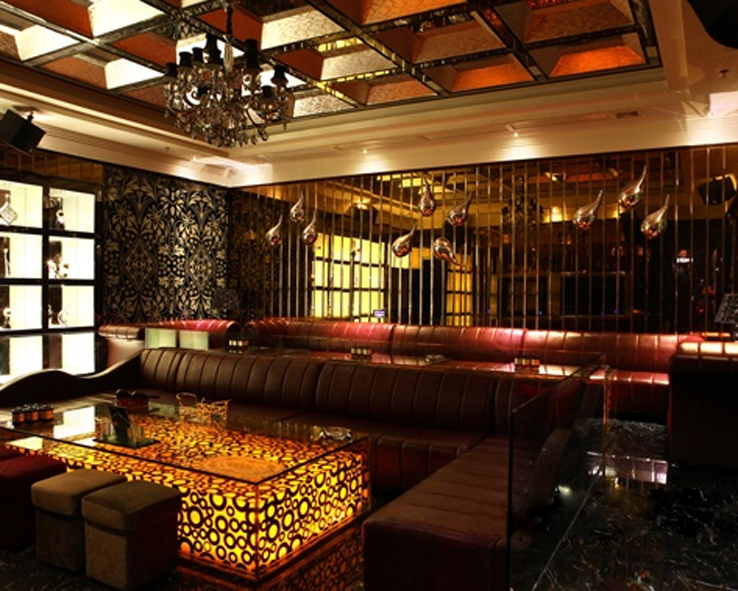 地面采用有圖案的大理石,以加強空間立體感,同時也考慮到減少噪音污染的問題。KTV設(shè)計的走廊太窄會讓人有局促感,而寬敞的走道給人安靜、溫馨的感覺。精心設(shè)計的走廊可以使過道的沉悶一掃而空,成為一道亮麗的風(fēng)景線。進入包廂,雕花圖案的玻璃和銀鏡的運用讓空間視野更為開闊,同時也增添了空間的魅惑感。