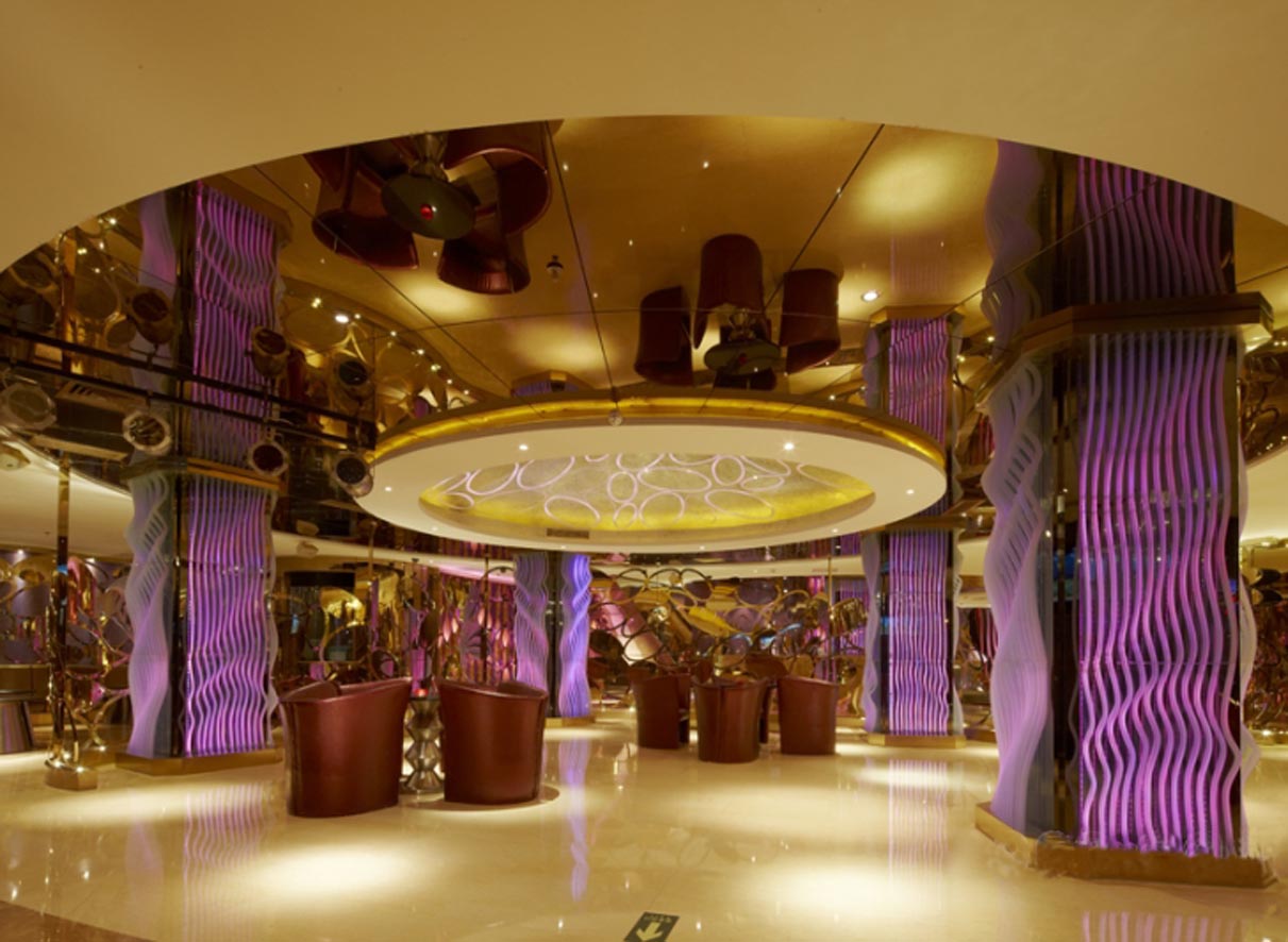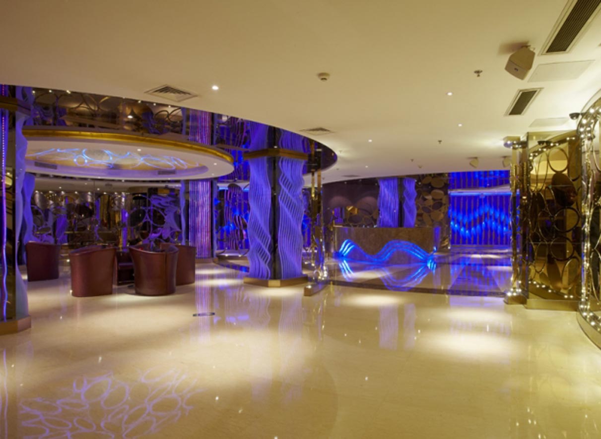 玻璃內(nèi)側(cè)的LED燈光變化莫測(cè)又明暗有致,帶來(lái)了不同的氛圍體驗(yàn)和場(chǎng)景效果,宛如海底世界中的色彩斑斕,使人的情緒隨之舞動(dòng)。大廳舊有造型大理石鏤空屏風(fēng)氣勢(shì)非凡,直沖天頂。