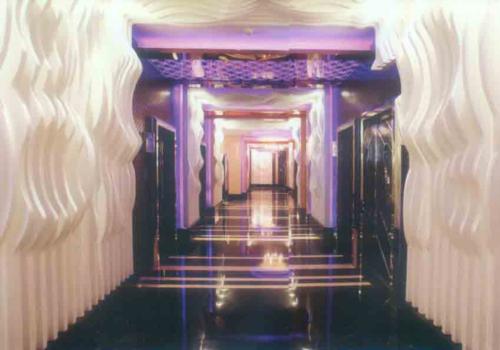 走廊設計為白色波浪紋造型,引領著客人來到紫色的房區(qū)。KTV大堂內(nèi)設有小型超市,方便消費者選購。