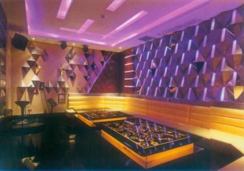 嘜歌時尚ktv的外立面以立體圖形為主,高低有致的長方形玻璃流水造型屹立門外,給人以清新的感覺。