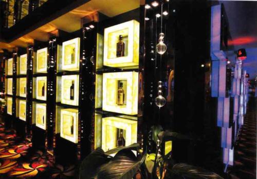 在立面造型的處理上,設(shè)計師配合著一種變化的感官迷離性,將各種幾何形狀或規(guī)律或不規(guī)律地排布開來,伴隨著音樂的變化和燈光的閃爍,自然而然地帶來一種強(qiáng)烈的節(jié)奏感,讓身處期間的消費(fèi)客戶隨之搖擺。