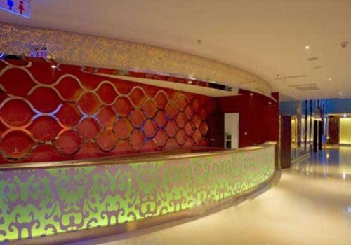而另一焦點--服務(wù)臺更以玻璃與復(fù)合材料人造石刻花并結(jié)合LED燈的變化將理性與感性“沖突并完美”的結(jié)合著。而等候大廳的格局,也打破以往的設(shè)計手法,將“會所”以全透明開放形式與等候大廳緊密的結(jié)合,將互動的歡樂提升至最高點。