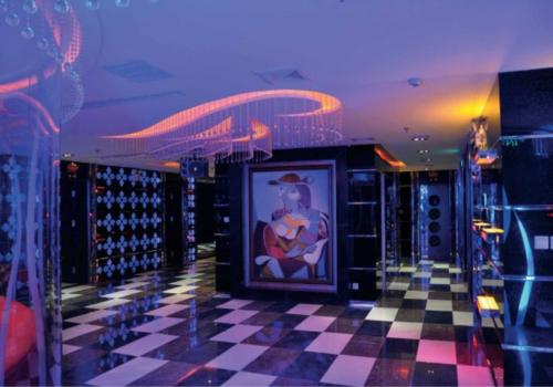 大廳的600多米鋼管首尾相接組成傘狀的個性化吧臺氣度非凡,KTV大堂設計展示出任何一個空間,無論什么樣的格調(diào),浪漫的玫瑰色總是少不了,它展示這設計的主題,流露著浪漫的氣息~~