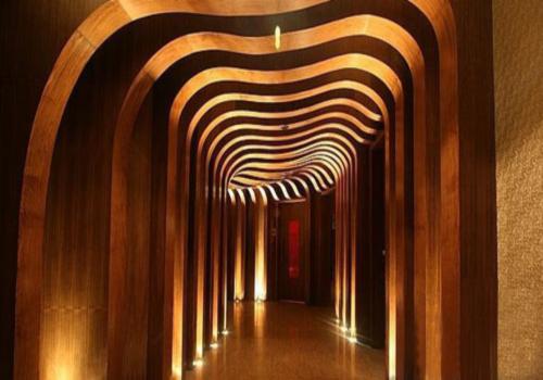 看到這幅KTV設計效果圖,感覺如同看到胡夫金字塔一般,流動的曲線,金黃的色彩,每一個元素都是來自胡夫金字塔的靈感~~