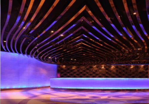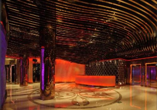 KTV大堂設(shè)計(jì),感受流星的浪漫,宇宙蒼穹的神秘。“流星雨”吊頂、LED 3D墻面、“冰磚”與金屬環(huán)造型墻的立體結(jié)合,這里給你的不僅僅是震撼,仿佛踏入宇宙蒼穹看到宇宙夢(mèng)幻奇景。