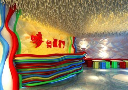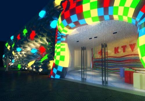 如同外觀一樣具有神秘感的KTV大堂設計,前臺如同麥浪般的波紋,色彩的斑斕又使前臺具有童話般的色彩~~