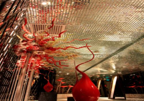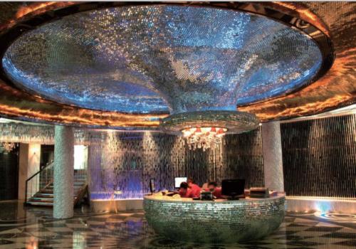 個性、迷幻的空間,大量運用現(xiàn)代新型材料(水晶、PU板、不銹鋼、大理石等),打造出了一個具有強烈視覺沖擊力的KTV空間。
