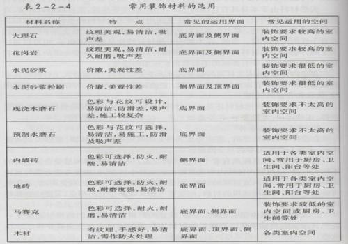 隨著裝飾材料業(yè)的迅速發(fā)展,如今能用于ktv設(shè)計(jì)中的材料日新月異,種類十分繁多,比較常用的如圖表2-2-4所示:
