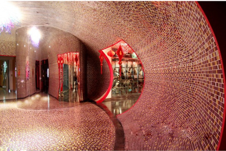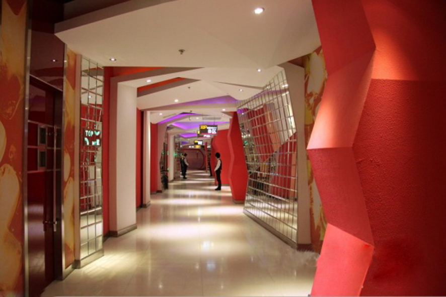 ?。裕希辛控準剑耍裕质且粋€典型的量販式KTV,其最大特點是色彩艷麗跳躍,風格前衛(wèi)時尚。并采用明亮簡潔的燈光襯托整個空間的時尚健康的氣氛??臻g采用兩個“蛋形”結構進行流線組織,并有“破殼而出,一鳴驚人”之理念,走廊借鑒了“桑丘瑪?shù)蔓惖禄羲?rdquo;常用的折紙手法,使得通道空間充滿著趣味性。
