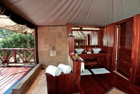 20間奢華帳篷搭在高架木制平臺上,并且有獨(dú)立的私人觀景臺,可以經(jīng)??吹较窈玉R一樣的野生動物。每間房都有一張?zhí)卮笏闹?,以及舒適床墊和亞麻細(xì)布。套間內(nèi)的設(shè)施包括太陽能熱水、冷水系統(tǒng)、大浴室、手洗臉盆和獨(dú)立洗手間。在一些帳篷里還有坐浴盆和按摩浴缸。