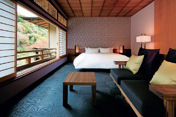 此外,每間客房都配有榻榻米沙發(fā)、觀景沙發(fā)等適合現(xiàn)代人的新型和式家具?;\罩著傳統(tǒng)茶屋式住宅的柔和燈光、微微浮現(xiàn)的唐紙花紋、從古代就應用于寺廟或神社佛閣的檜木制成的浴池等,日式文化體現(xiàn)在每一個角落。