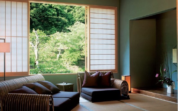 京都簡直是一個保存了日常傳統(tǒng)工藝的圣地。另一方面,京都的會所設計傳統(tǒng)的同時也包含些許前衛(wèi)的因素。設計師不但有效地利用了日本木建筑的輕巧、由單間組成的房間結構以及歷史所創(chuàng)造出的情趣,還營造出具有“虹夕諾雅”特色的舒適感。