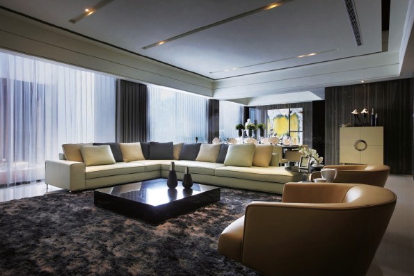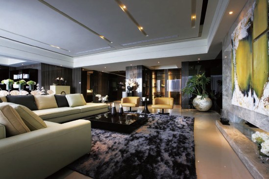 如此的設計使整體空間看起來更為寬闊明朗。除此之外,同樣的內里空間,私人會所設計公司利用深淺不同的色調調配出一個繽紛的居家住宅,從客廳淺白的沙發(fā)、深黃的潑墨以至各區(qū)空間墻面基調采用的灰色鏡面材質,甚至一盆不起眼的綠植,斑斕的色彩豐富著每一個訪客的視覺神經,既然量體以廊道空間設計劃分,那么不管向哪個方向展開設計,廊道空間都占有量體中軸線的地位。