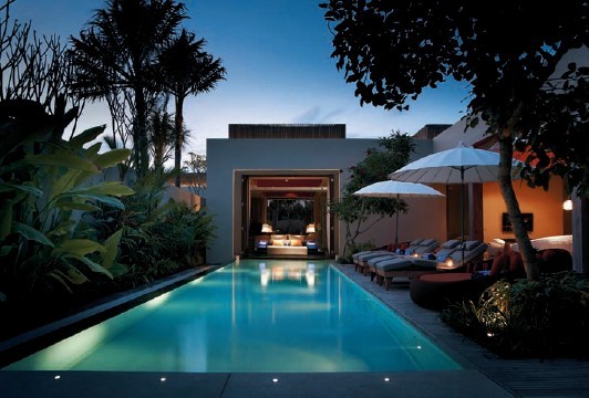 四套三居室別墅為熱帶氣候下的戶外娛樂提供了一個(gè)風(fēng)格多樣的空間。吊扇為室內(nèi)引入了更多自然風(fēng)??蛷d的玻璃折門則使游客更快捷地到達(dá)20m 的無(wú)邊私人泳池,池邊還有各種戶外燒烤用具。