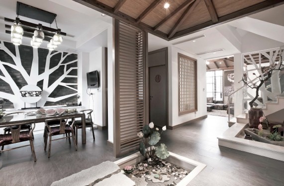 本案的空間要用360度的視角來進行全方位的審視,才能探索出其中的藝術(shù)性,有時候回發(fā)現(xiàn)照相機的鏡頭只能表現(xiàn)一個局部。會所設(shè)計公司以女主人喜歡中國古典文化的浪漫主義為切入點,在色彩設(shè)計上用了很多黑、白對比,同時加以色彩的點綴,從而呈現(xiàn)出一個完美的視覺空間。