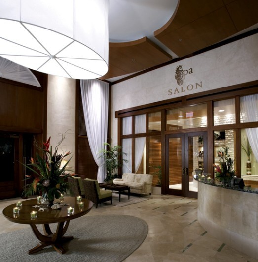 因spa空間一般給人以安寧與恬適的感覺,所以大廳作為客人進(jìn)入時(shí)的第一空間,設(shè)計(jì)首先應(yīng)當(dāng)去繁從簡(jiǎn),簡(jiǎn)約而富有韻味的設(shè)計(jì)能更好地體現(xiàn)安寧與舒適的感覺,同時(shí),大廳又是通往其他各個(gè)功能區(qū)的過度空間,在空間布局上要根據(jù)spa的流程來設(shè)計(jì)。大廳通常還會(huì)設(shè)置一個(gè)前臺(tái)看見來供服務(wù)之用。
