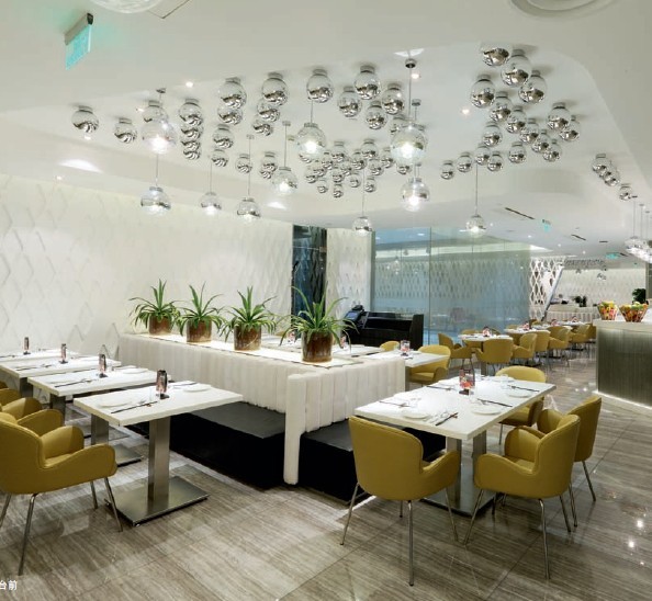 您現(xiàn)在所在的位置:首頁(yè)>設(shè)計(jì)風(fēng)向標(biāo)>正文電影概念主題, 映射劇情的網(wǎng)狀物、輸送帶、垂直裝飾物轉(zhuǎn)化在空間中。頂棚上一顆一顆的鏡面玻璃球和以多層次灰白色為基調(diào)的造型壁面結(jié)合, 以墨黑皮制座椅作為視覺(jué)所及的句點(diǎn)??臻g的中央?yún)^(qū), 吧臺(tái)造型優(yōu)雅的“未來(lái)世界”的弧形語(yǔ)匯呈現(xiàn)科技美學(xué), 鏡面底板搭配白色人造石桌面構(gòu)成吧臺(tái), 簡(jiǎn)潔低調(diào)的材料語(yǔ)匯呈現(xiàn)出一種未來(lái)的時(shí)髦美感。