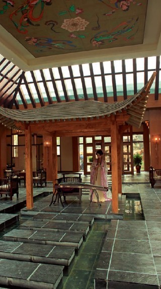 您現(xiàn)在所在的位置:首頁(yè)>設(shè)計(jì)風(fēng)向標(biāo)>正文 在建筑風(fēng)格上吸納了唐代建筑形態(tài)宜散不宜聚、宜藏不宜露的特點(diǎn);建筑主體采用灰藍(lán)色板瓦、淺黃色墻身、實(shí)木線條裝飾及木色鋁合金門窗框包邊,并加入磚雕等細(xì)部。室內(nèi)裝修設(shè)計(jì)以古樸大氣、精致典雅的仿唐風(fēng)格為基本風(fēng)格,整體色彩儒雅、凝重,線條洗練。同時(shí),把外墻裝修風(fēng)格引入洗浴設(shè)計(jì),達(dá)到建筑外立面和室內(nèi)裝修風(fēng)格的一致性和完整性。