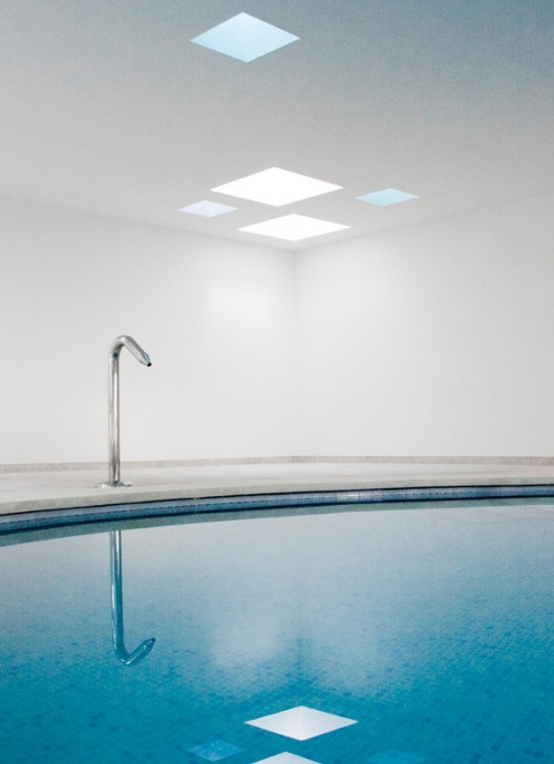 泳池的設計挑戰(zhàn)不僅僅是要讓新的空間被有效利用,同時它們應起到突出酒店陽光明媚氣氛的作用。現(xiàn)已完成的改造中,方形開口之間相互作用,自然光通過從綠色屋頂、墻壁等不同方向射入、就像在空間中舞蹈。