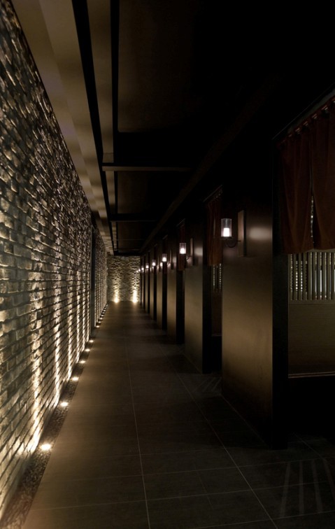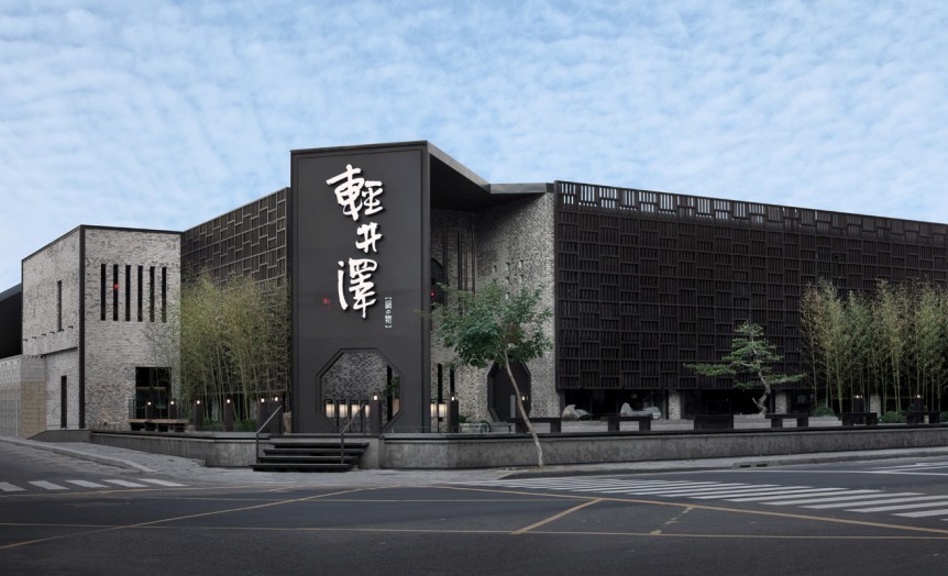 靜定穩(wěn)重的建筑主體采用古色古香的斑駁灰磚砌作,兩側(cè)立面分別裝置大小交錯(cuò)銜接的黑色格柵以及纖長的直列開窗,融入簡化后的格柵線條。低調(diào)的禪風(fēng)加上現(xiàn)代感的會(huì)所設(shè)計(jì)技巧繪景,使建筑兼具水墨與和風(fēng)的美感,散發(fā)醇香的人文風(fēng)味。