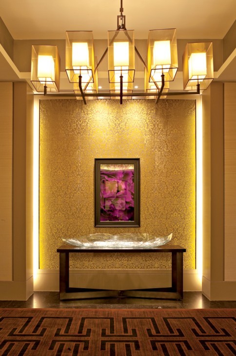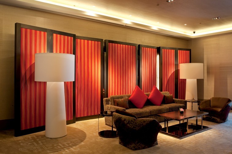 龍軒以中國傳統(tǒng)華麗藝術(shù)圖案為構(gòu)思理念,采用大量名貴絲綢以極富層次的設(shè)計,將華麗的絲綢刺繡屏風(fēng),典雅的水晶吊燈、精致的青銅浮雕工藝和瑰麗的絲綢簾幕,以及高貴的天鵝絨木制家具一一展現(xiàn)在賓客眼前。