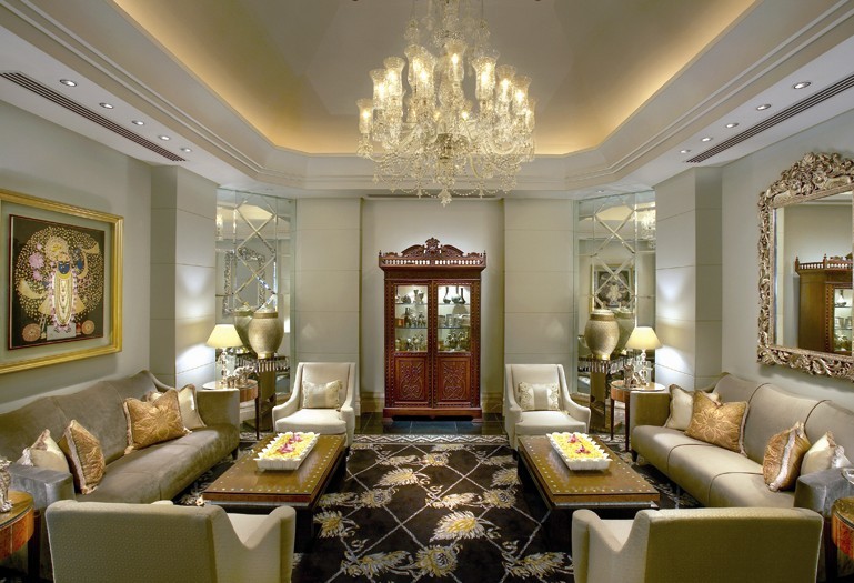 壯觀(guān)大堂:客人抵達(dá)酒店會(huì)所,迎面而來(lái)的是宏偉的門(mén)廊,緊接著映入眼簾的是門(mén)廊兩邊的兩座白象雕像。大堂的整個(gè)墻壁都繪滿(mǎn)了10瓣蓮花圖。會(huì)所設(shè)計(jì)重新定義了豪華與卓越的概念。高大雄偉的天花板上掛著手工吊燈,這是一個(gè)自由的空間,該空間為來(lái)自印度的藝術(shù)家展現(xiàn)其藝術(shù)作品提供了一個(gè)優(yōu)雅的環(huán)境。
