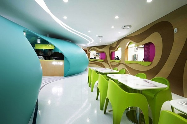 您現(xiàn)在所在的位置:首頁>設(shè)計(jì)風(fēng)向標(biāo)>正文路過這間餐廳,五顏六色的彩虹空間將會(huì)大大的吸引你的眼球,為了與室內(nèi)風(fēng)格搭配設(shè)計(jì)師連室外門口處也用鮮艷的噴漆涂鴉一遍。進(jìn)門后更會(huì)被醒目的色彩和各種形態(tài)構(gòu)成的充滿視覺感官刺激的環(huán)境所震撼,有沖擊力的色彩加上海浪的裝飾更有種沖浪的感覺。