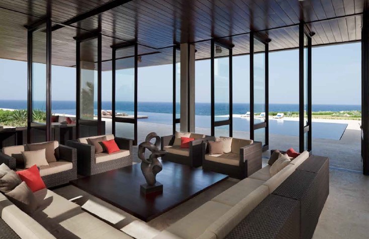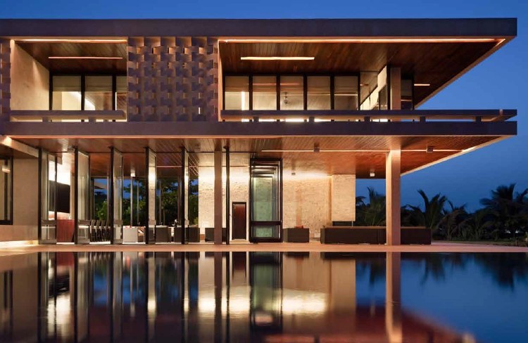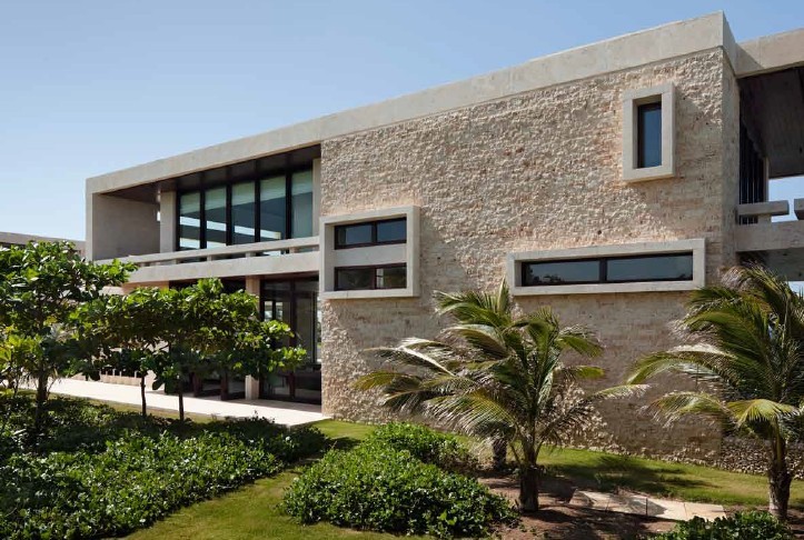 您現(xiàn)在所在的位置:首頁(yè)>設(shè)計(jì)風(fēng)向標(biāo)>正文該業(yè)主來自紐約,他委托Rangr 設(shè)計(jì)師事務(wù)所為他的家人和朋友們?cè)O(shè)計(jì)一處寬敞的度假私人會(huì)所,就像奢華的租賃式會(huì)所那樣。該建筑坐落在多米尼加共和國(guó)北部海岸邊,設(shè)計(jì)目標(biāo)是在現(xiàn)有地塊上利用當(dāng)?shù)噩F(xiàn)有的建筑材料建設(shè)一座現(xiàn)代的建筑。建筑為鋼筋混凝土結(jié)構(gòu),外部覆以當(dāng)?shù)靥赜械纳汉魇?br /> 該建筑具有良好的私密性,同時(shí)享有開闊的視野。內(nèi)外空間相互融合,清涼的海風(fēng)不時(shí)地吹入室內(nèi),遮陽(yáng)板可以抵擋陽(yáng)光的照射,房屋具有良好的采光和通風(fēng)。