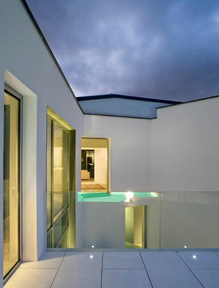 會所設(shè)計公司希望人們能將其打造成一座獨特的建筑,希望在建筑內(nèi)部營造出新的空間。建筑結(jié)構(gòu)被設(shè)計師沿垂直、水平和橫向方向“切割”,打造了一個猶如雕刻一般的建筑。這些切割面使內(nèi)外空間形成了關(guān)聯(lián)。內(nèi)墻和外墻均被涂成白色,而起到對外溝通作用的窗戶等裝置則使用淺藍(lán)色的石英石制成,其柔和的反射效果使室內(nèi)空間彌漫著大自然的氣息。